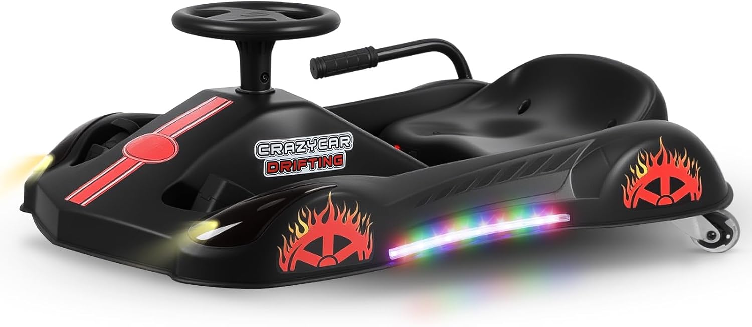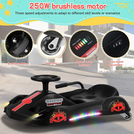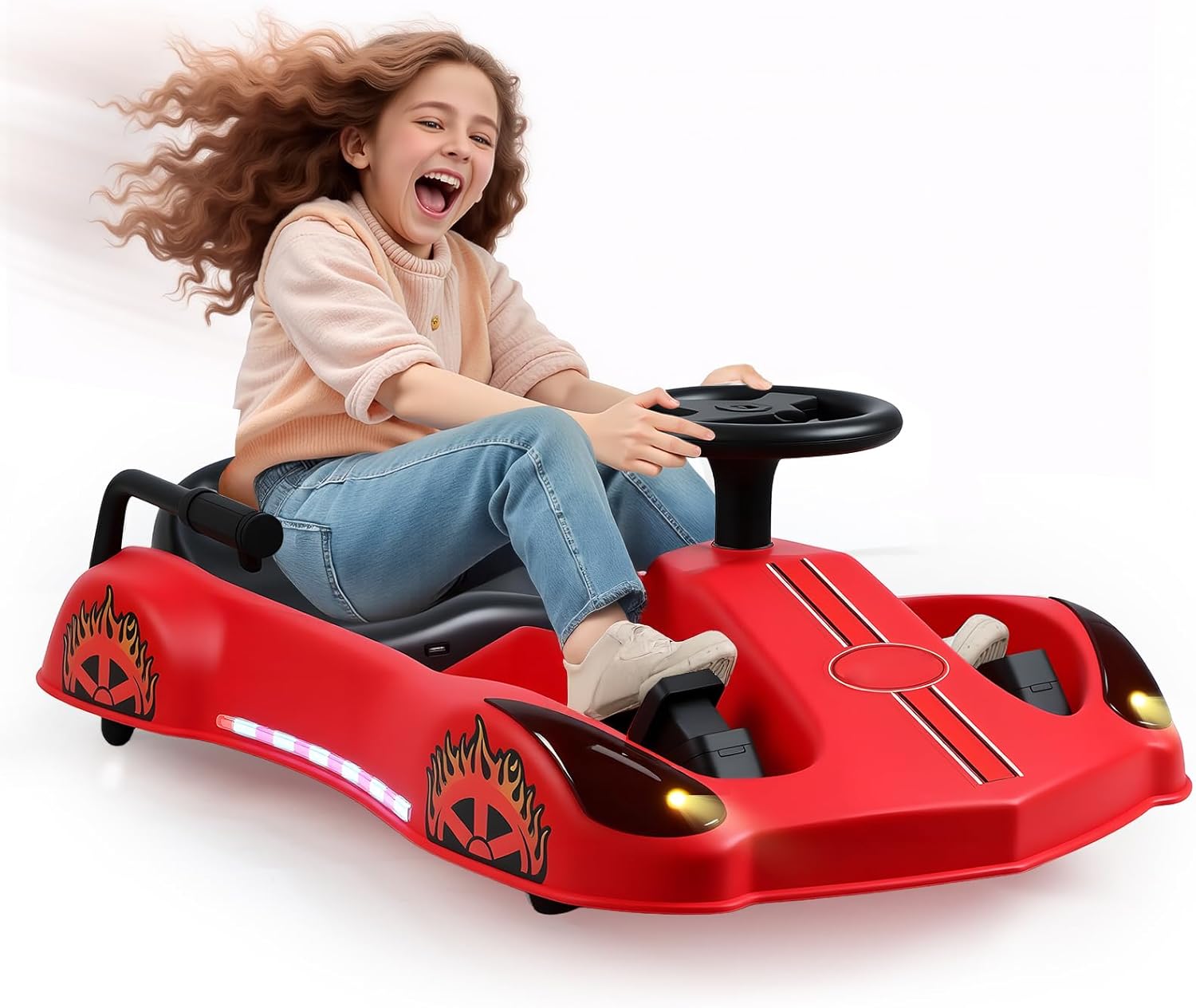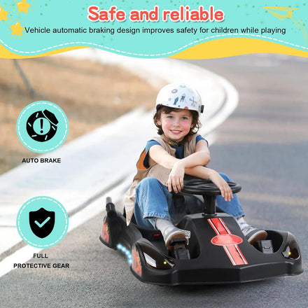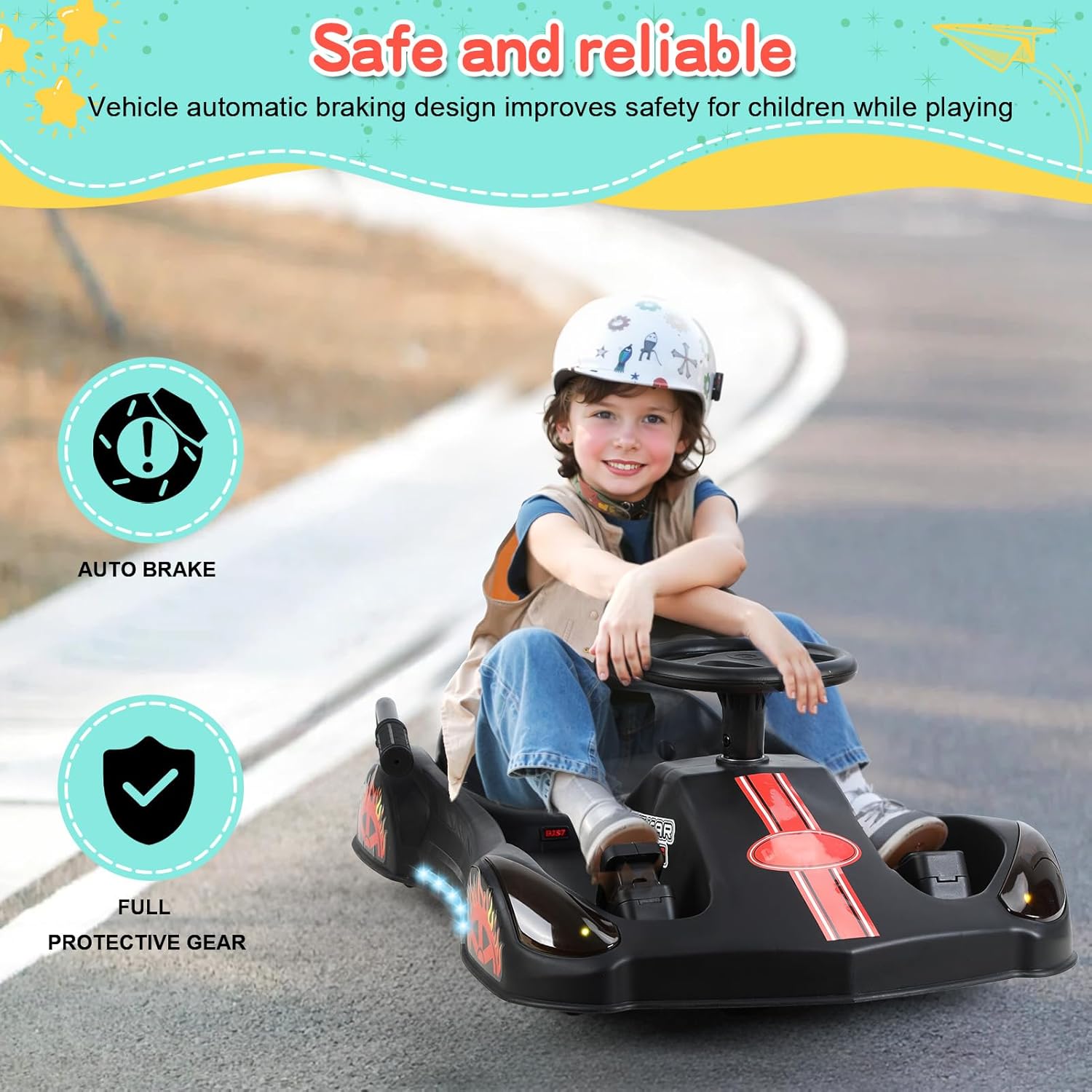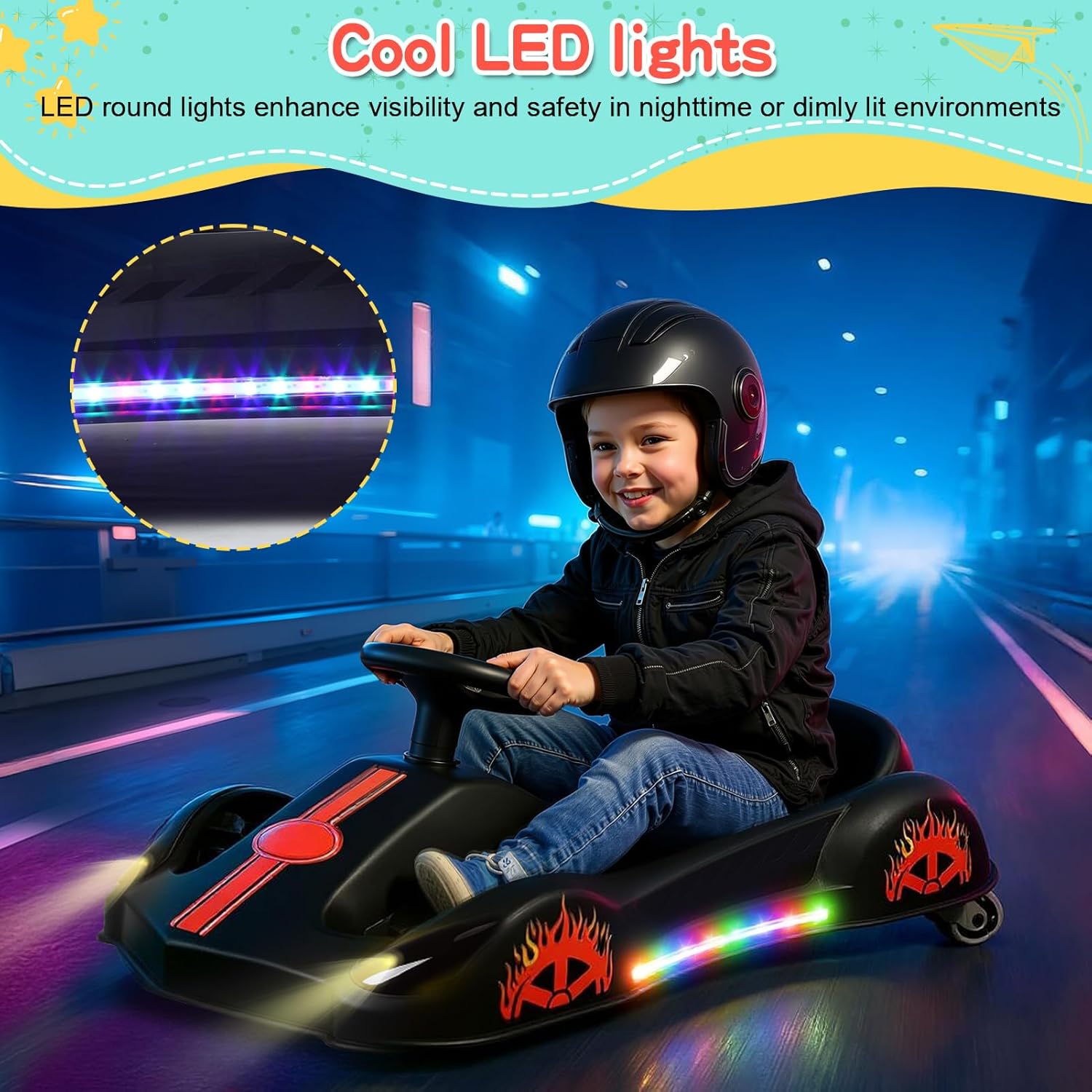 36V Electric Drift Go Kart for Kids Ages 8-14 Years Old, Ride On Car for Kids with Brushless Motor, High/Low Speed, LED Lights, 3-Speed Adjustable, Ride On Toy (Black)