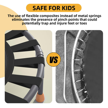 • Spring-Free, Noiseless Bounce for Safe Indoor & Outdoor Play: Our Kids Indoor Trampoline is built with a spring-free elastic band system, offering a safe, quiet bounce. Enjoy noiseless jumping whether used as an Outdoor Trampoline in your garden or as a fun indoor exercise solution