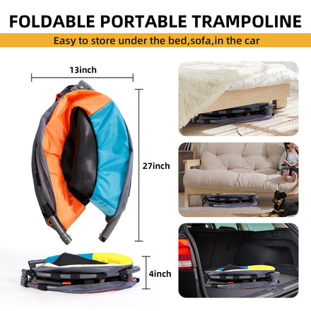 • Foldable & Portable Design for Compact Storage: This Mini Trampoline is designed for convenience. Its foldable, lightweight frame collapses to just 11.8 inches, making it perfect for tight spaces in bedrooms, playrooms, or even for on-the-go active play