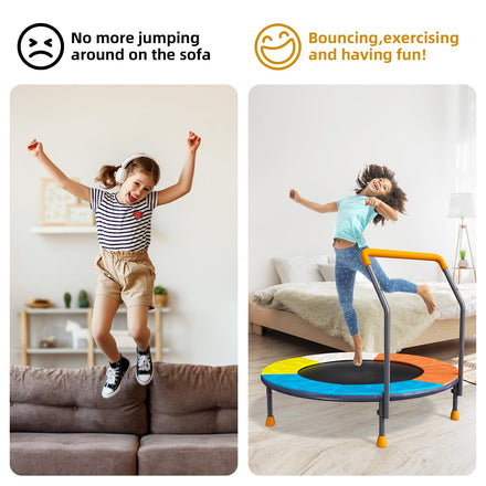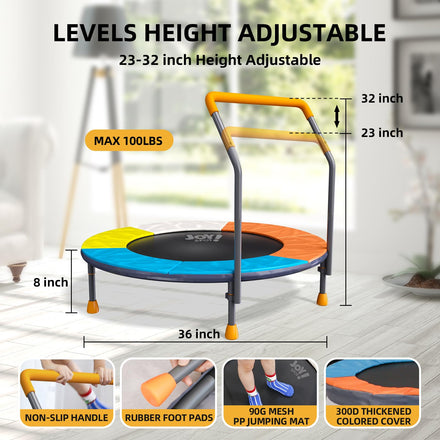 • Adjustable Handle for Growing Toddlers & Kids: Experience secure, active play with our Toddler Trampoline featuring an adjustable handlebar (23"–32") that grows with your child. Ideal for children aged 1-6, it delivers enhanced support and stability during every jump