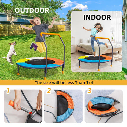 3FT Toddler Trampoline with Adjustable Handlebar - 36” Foldable, Spring-Free & Noiseless Mini Kids Trampoline for Indoor/Outdoor Active Play - Safe, Durable Design, Supports Up to 100 lbs