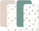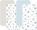 • FLEXIBLE FIT - Our mini crib sheets measure 38"x26" up to 6" height, with an elastic band around the bottom to ensure a snug fit, they can compatible with most mini crib mattress and pack n play mattress. This set includes four pack and play sheets in different styles for easy changing whenever you need to