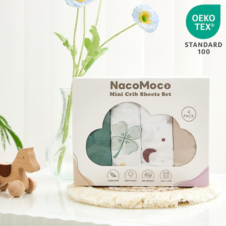 • STYLISH BABY GIFT - NacoMoco mini crib mattress sheets set come in a gift box with non-compressed packaging, it makes a thoughtful and practical gift for new parents. You can buy with confidence as we will provide you with a reliable service guarantee