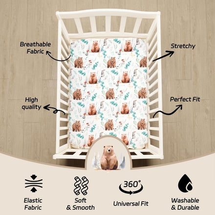 4 Pack Woodland Forest Animals Wood Neutral Unisex Fitted Baby Crib Sheets Set for Baby Boys or Girls (Cartoon Beer, 52 * 28)