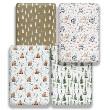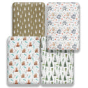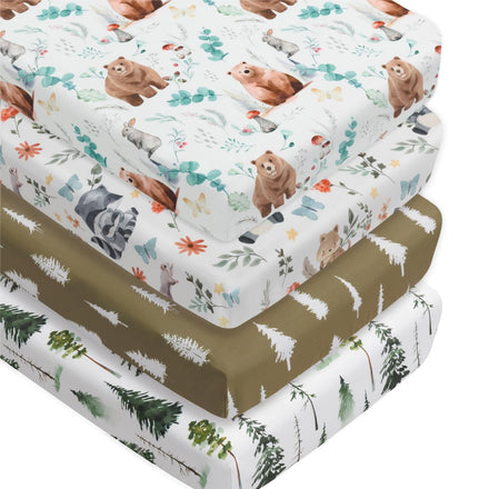 • 4 PACK VALUED SET: The woodland themed crib sheets set included 4 pack baby crib sheets with different colors and designs. You will have enough cribs sheets to replaces once one even two or three during washing, perfect for any nursery, for boys or girls! Buying 4 different kinds of crib sheets as a set than buying them one by one will save your money and time