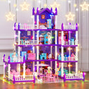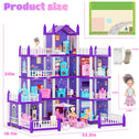 4 Stories Dollhouse for Girls, DIY Doll House Accessories Playhouse with Furniture and 11 Rooms, Pretend Play House with Lights for Kids, Portable Building Dolls Playset Toys Kit Gift for Ages 6+