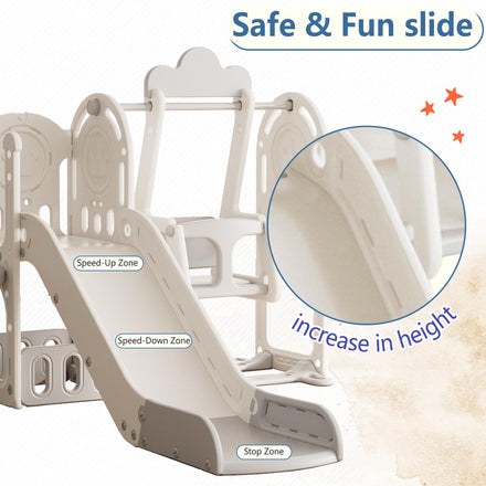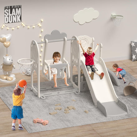 5-in-1 Toddler Indoor Playground for Kids 1-4, Baby Slide with Climbing, Strong Swing, Sturdy Playset for Indoor & Outdoor Play, for Toddlers, Easy Assembly (Grey+White)