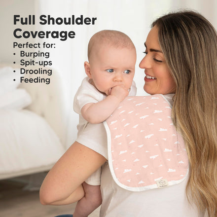 • Maximum Shoulder Coverage - Our burping cloths for babies are specially designed in figure-8 to ensure a secure fit, preventing the burp rags from slipping. Measuring 21" x 10", this neutral burp cloth provides ample coverage for your shoulders.