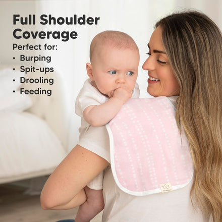 • Maximum Shoulder Coverage - Our burping cloths for babies are specially designed in figure-8 to ensure a secure fit, preventing the burp rags from slipping. Measuring 21" x 10", this neutral burp cloth provides ample coverage for your shoulders.