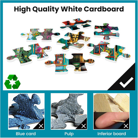 • Vibrant Artwork: Featuring a beautifully illustrated cat design with bright, vibrant colors, this 500 pieces adult puzzle brings joy and creativity to your puzzle-solving experience.