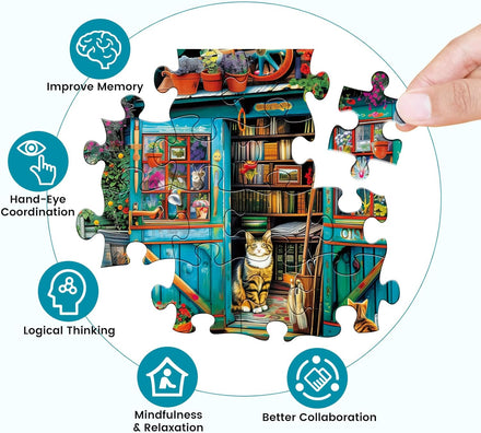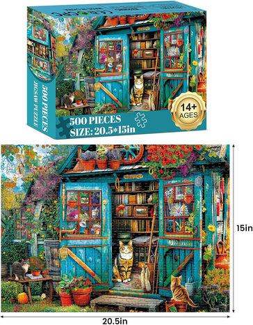 500 Piece Puzzle for Adults Jigsaw Puzzles Cat Puzzles, Book House Puzzles for Elderly Kids Teens, Artistic Decorations, Educational Toys Challenging Activity Gift Family Puzzle Lovers for Friends
