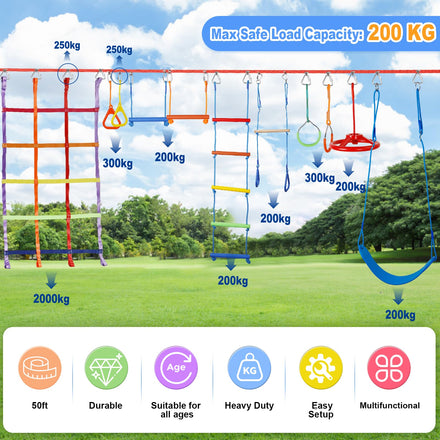 • 【Endless fun and entertainment】 - Whether it's for individual play or group activities, our Ninja Warrior Obstacle Course provides hours of excitement, helping kids stay active, develop their motor skills, and create unforgettable memories. It's ideal for birthday parties, community events, school carnivals, or any occasion where kids need a dose of high-energy fun!