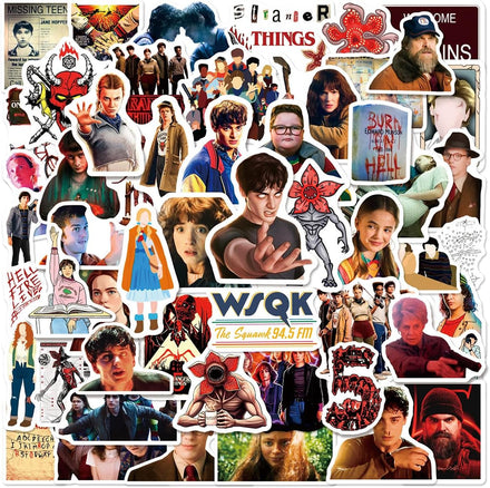 Product Description of Cartoon Stranger Season 5 Things Characters Stickers: Theme: Cartoon Characters Style Stickers Material: High quality vinyl PVC Single size: About 2-3.5 inch of each design Quantity: 50Pcs/pack FEATURES: 1. Environmental protection material (PVC) used 2. High quality printing with bright color 3. Sun protection and Waterproof! Never faded out! 4. No glue left after tearing Q&A: Q:Are the cartoon characters stickers delivered randomly and will they be repeated? A:Be at ease,the cartoon characters stickers waterproof are not delivered randomly, all sticker patterns are different and will not repeat.Our stickers are well made with excellent materials, pleasant patterns and each of which has been carefully selected. Q:Is cartoon characters stickers really waterproof and how is the quality? A:Sure! The cartoon characters stickers are all made of vinyl, very waterproof,high-definition patterns and bright colors. So the Cartoon Characters stickers are worth buying.NOW!!! JCQAYB is a professional and responsible brand and provides every product with hearts, which is worthy of the trust of you and your family