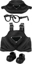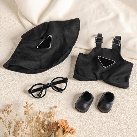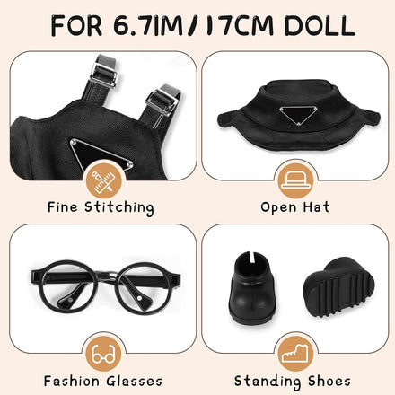 6.7in/17cm Doll Clothes Set, 4 PCS Fashion Outfit Includes Hat, Bib Pants, Glasses, Shoes, Cute Collectible Doll Accessories Unique Style (Black)