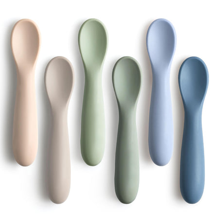 6 Pack Baby Spoons, First Stage Spoons, Shorter Length for Self Feeding, 6+ Months, Baby Training Spoons, Food Grade Silicone, Dishwasher Safe & Boil-proof