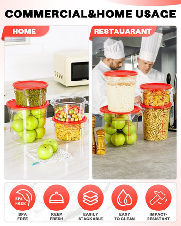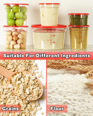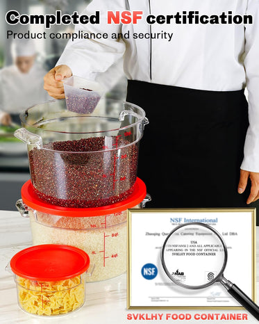 • 【FOOD STORAGE CONTAINER SET】: SVKLHY clear food container package includes 4*6qt square food storage containers with red lids, 8*free lables, 1*marker and 2*measuring cups. Additional accessories do better cater to a variety of usage needs and scenarios, enhancing the overall user experience.