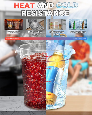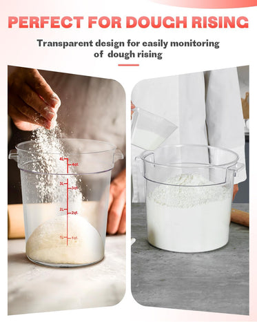 6QT NSF Food Storage Containers: 8 PCS [Food Grade][Hot&Cold Resistant] Commercial Clear Round Food Storage Containers with Scales Handles for Home Restaurant Kitchen Proof Dough(BPA FREE N)
