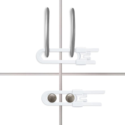 • 【SIMPLE INSTALLATION】Locks are extremely easy to install and remove.No tools required for installation, no drill, no more worrying about screws or sticky glue,they will not leave marks also,protect the integrity of your cabinets. Squeeze both buttons simultaneously to unlock, which is easy for adults but it is difficult for kids to unlock,cupboard locks prevent your baby from opening the cupboard or turning the doorknob lock to cause unnecessary harm to them.