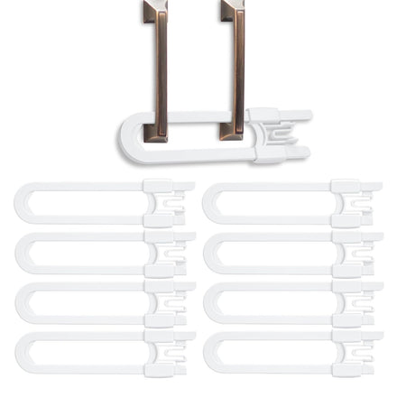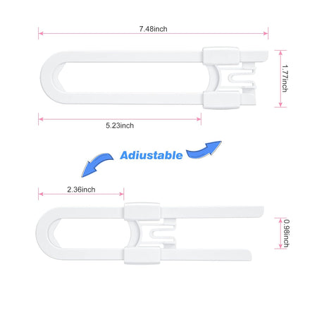 • 【Adjustable】You can adjust the baby proof U locks from a maximum of 6 inches to a minimum of 1 inch, and any position in between. This ensures that you always have the right sliding baby latch to fit your drawer or placement.Suitable for all kinds of mushroom-shaped round knobs and D-shaped or ring handles.