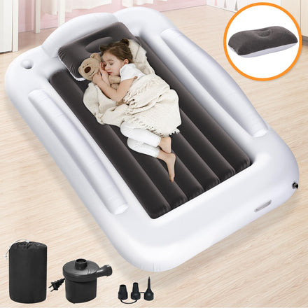 Abdtech Inflatable Toddler Travel Bed - Portable Toddler Kids Travel Bed with Safety Sides Complete Kids Air Mattress Set with High-Speed Pump, Ideal for Vacation Camping and Sleepover (60 Inches)