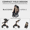 • 🚩Stylish & Durable Luxury Stroller: Accombe infant stroller boasts a sturdy alloy frame for sturdy & comfortable walks and breathable, skin-friendly fabric that won't irritate your baby's delicate skin. It also comes with a detachable foot cover to keep your little one warm and a convenient mommy bag for holding essentials.