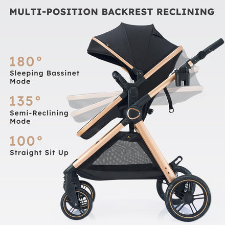 Accombe 2 in 1 Baby Stroller, Convertible Bassinet Pushchair for Infants and Newborns 0-36 Months