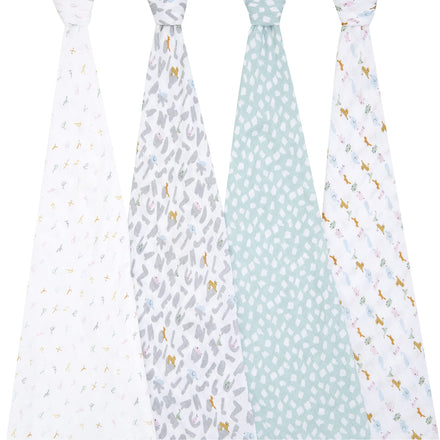 Details: aden + anais Swaddle Blankets, Cotton Muslin, 4 Pack, Alphabet Animals