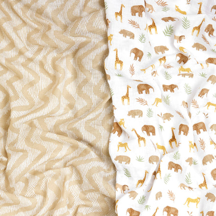 aden + anais Essentials Swaddle Blanket, Muslin Blankets for Girls & Boys, Baby Receiving Swaddles, Newborn Gifts, Infant Shower Items, 2 Pack, Tanzania