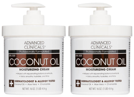 Advanced Clinicals Coconut Body Lotion Moisturizing Cream & Face Lotion For Women & Men | Coconut Lotion | Natural Coconut Oil Cream Skin Care Moisturizer Body Butter Balm For Dry Skin, 16Oz, 2-Pack
