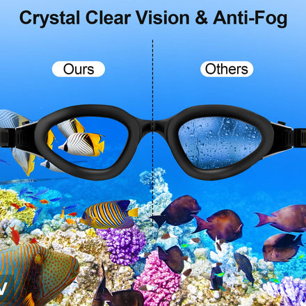 • Color Coating & Clear Vision-The swim goggles feature an upgraded fogging-preventive coating, ensuring they won't fog up and providing an undistorted view with super clear vision underwater. Enjoy a wonderful swimming time without glare, distorted or blurry.