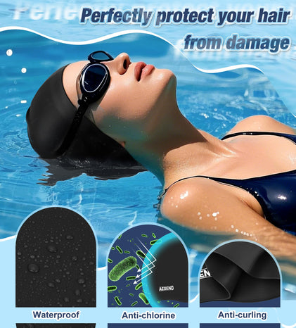 Aegend Swim Caps for Long Hair, Durable Silicone Swimming Caps for Women Men Adults Youths, Easy to Put On and Off, Waterproof Swim Hats Bathing Caps to Keep Hair Dry, 1 Pack, Black