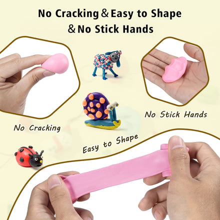 • Features: Oven bake clay will harden when heated. Baking clay does not harden on its own, it is reusable, easy to stretch, easy to molding, easy to carve, does not crack, and does not stick to hands. Modeling clay for children and beginners to make trinkets, animal models and figure models