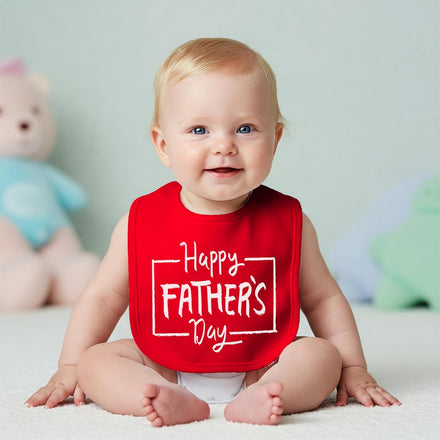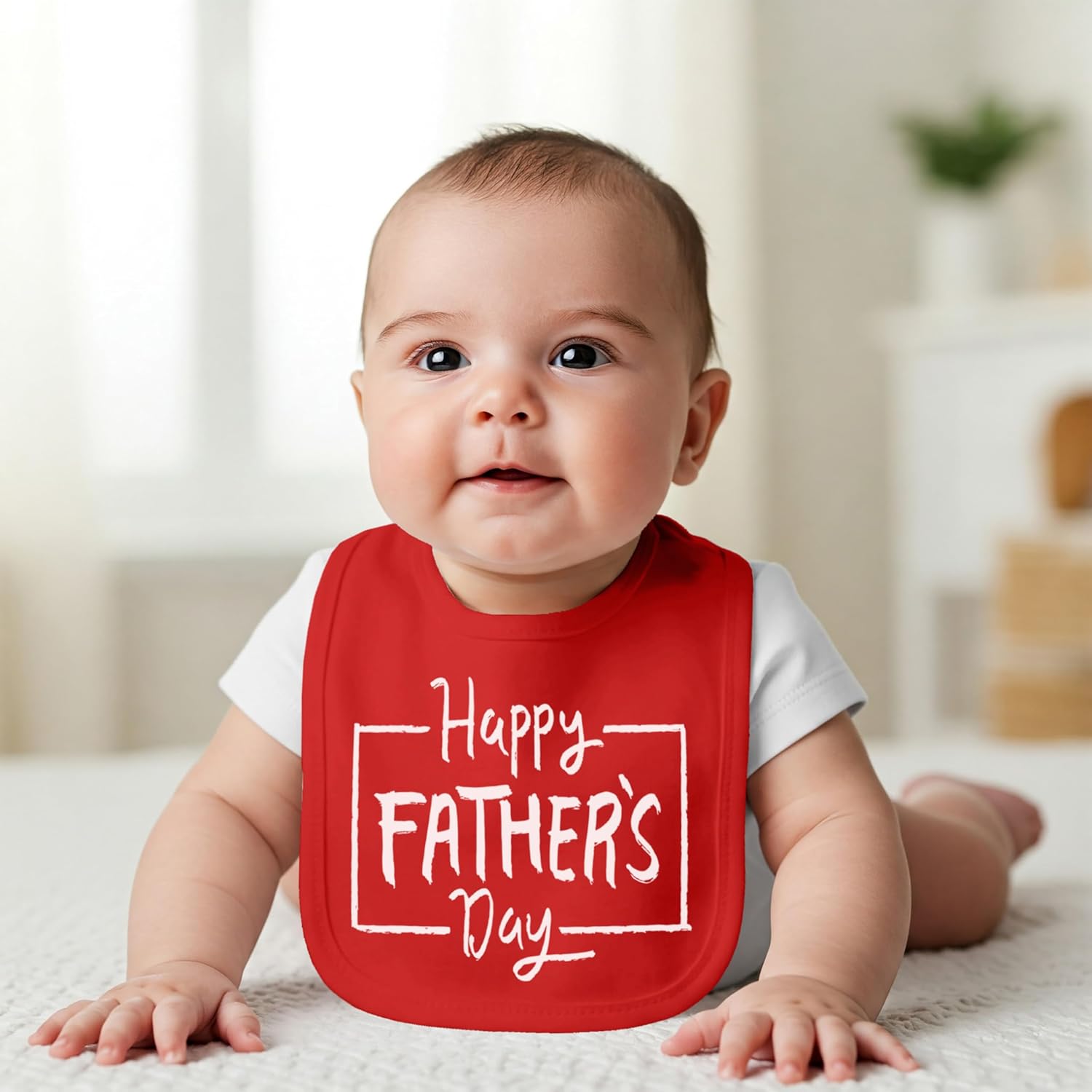 • Material: Crafted from soft and durable cotton to ensure comfort for your baby. - Design: Adorned with charming Father's Day-themed illustrations and vibrant colors. - Size: Perfectly sized to protect your baby's clothes from spills and messes