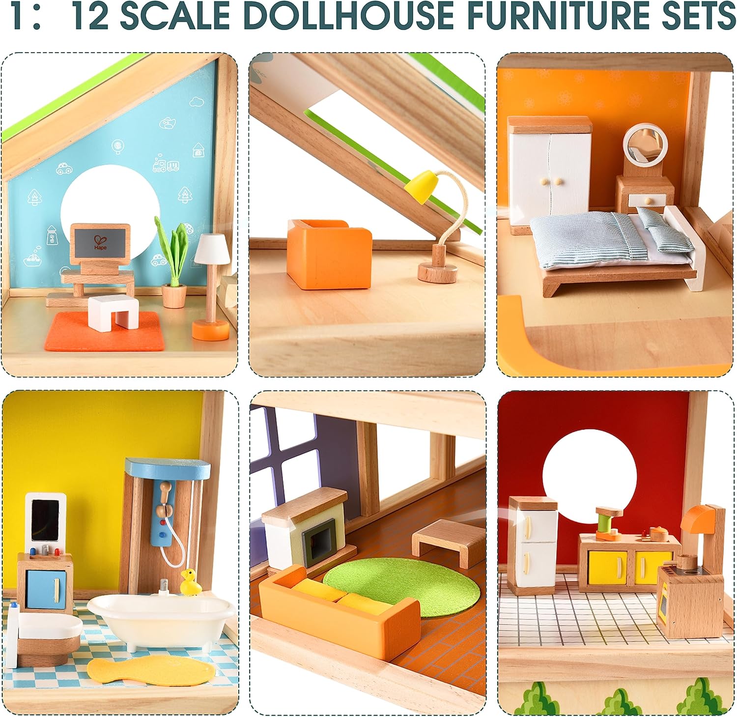 All Seasons Kids Wooden Dollhouse by Hape | Award Winning 3 Story Dolls House Toy with Furniture, Accessories, Movable Stairs and Reversible Season Theme L: 23.6, W: 11.8, H: 28.9 inch