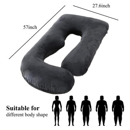 ALLOPERA Pregnancy Pillow, Full Body 57 Inch Maternity Pillow with Removable Washable Cover - Sleep Support for Legs, Back, Neck, Shoulder, HIPS, Belly for Pregnent Women, Black Grey Velvet Cover