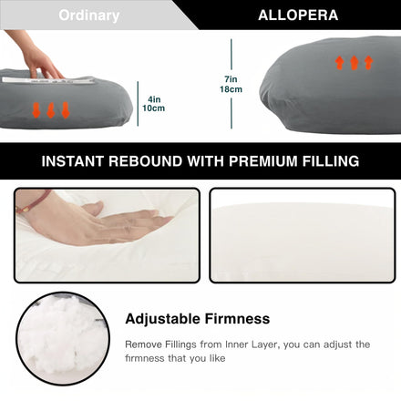• Multiple Functionality: In addition to use on the bed, the ALLOPERA pillow can also be used on the couch or in other settings. You can adjust the pillow according to different postures to support various parts of your body.
