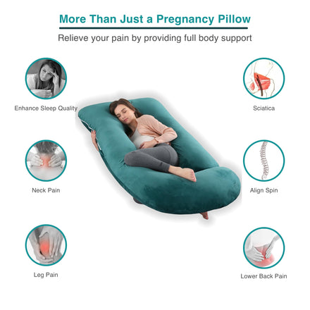 ALLOPERA Pregnancy Pillow, Full Body Maternity Pillow 57 inch, with Removable Washable Cover - Sleep Support for Legs, Back, Neck, Shoulder, HIPS, Belly, Velvet Cover (Dark Green)