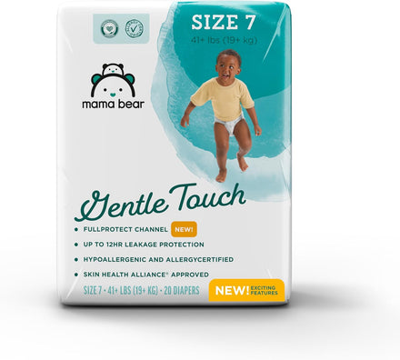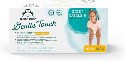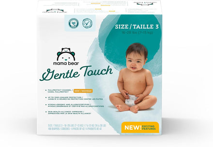 Mama Bear Gentle Touch Diapers. Gentle on skin. Cute on behinds. Our diapers offer trusted leakage protection for up to 12 hours. They’re dermatologist tested, hypoallergenic and thoughtfully made with ingredients that are safe on baby’s delicate skin. The contoured shape wraps baby in a comfortable fit that stays in place, day or night. Our diapers are rigorously tested for quality and effectiveness; and your satisfaction is guaranteed