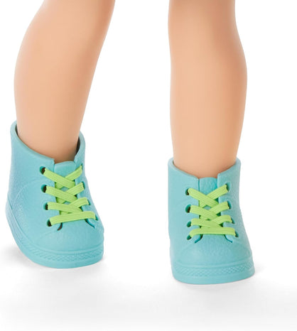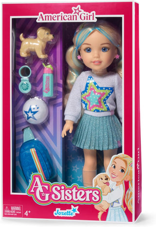 Funny and fearless Jozette loves telling jokes, making people laugh, and playing sports—especially soccer. When she’s not hanging out with her besties, she spends her time playing board games, playground games, and puppy games with her goofy golden retriever. Her motto? “You got this.” The Jozette 14.5" doll features blue eyes and long wavy blonde hair with blue highlights. Pair this 13-piece set with the other AG Sisters dolls and their collection for playtime fun (each sold separately).