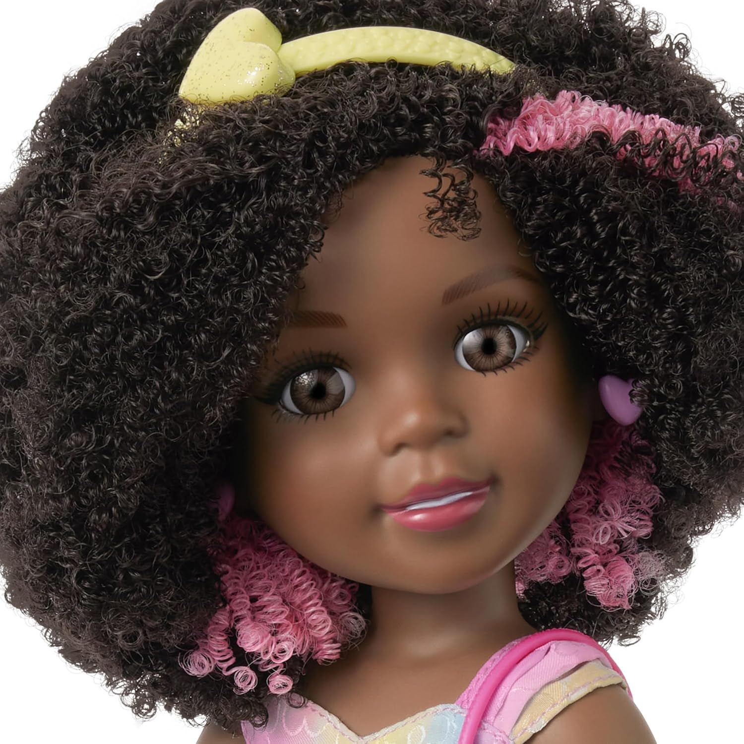 American Girl, AG Sisters Wesley Doll, Brown Eyes, Short Curly Dark-Brown Hair with Pink Highlights, 14.5", Age 4+