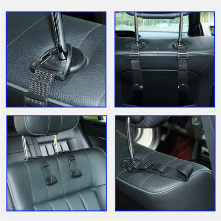 • SECURE AND HANDY: You will no longer have to put the stuff on the floor or the seat. The headrest hooks keep your bags/water bottles away from falling off at driving trip, and keep the belongings at reach.