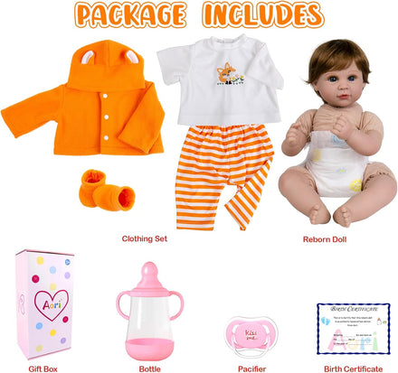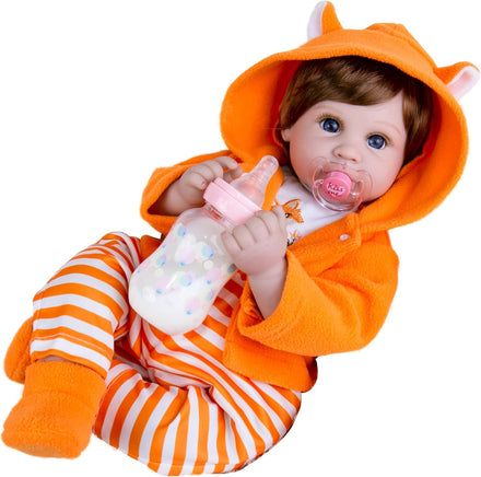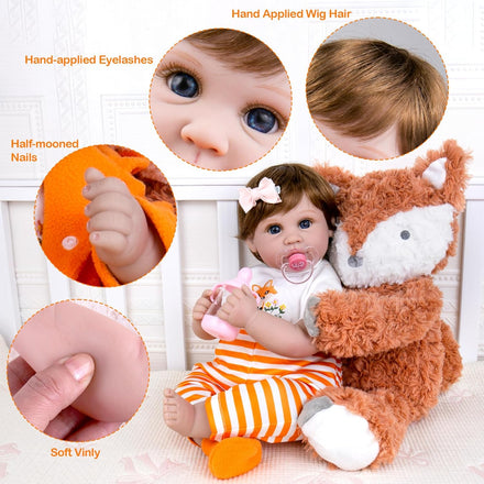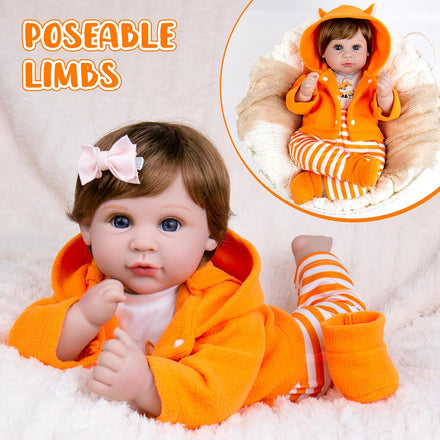 Aori Lifelike Reborn Baby Dolls - 22 Inch Realistic Baby Girl - Soft Weighted Body Doll with Fox Outfit Newborn Baby Doll for Girls 3+, Collectors, Role Play | Real Life Baby Doll Gift Set