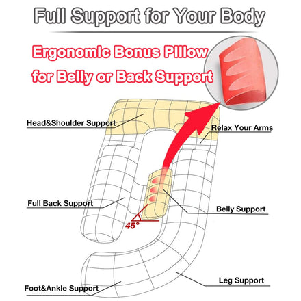 • Adults of all ages and sizes will benefit from our cozy pregnancy body pillow designed to embrace your total body while sleeping on your side, back or stomach