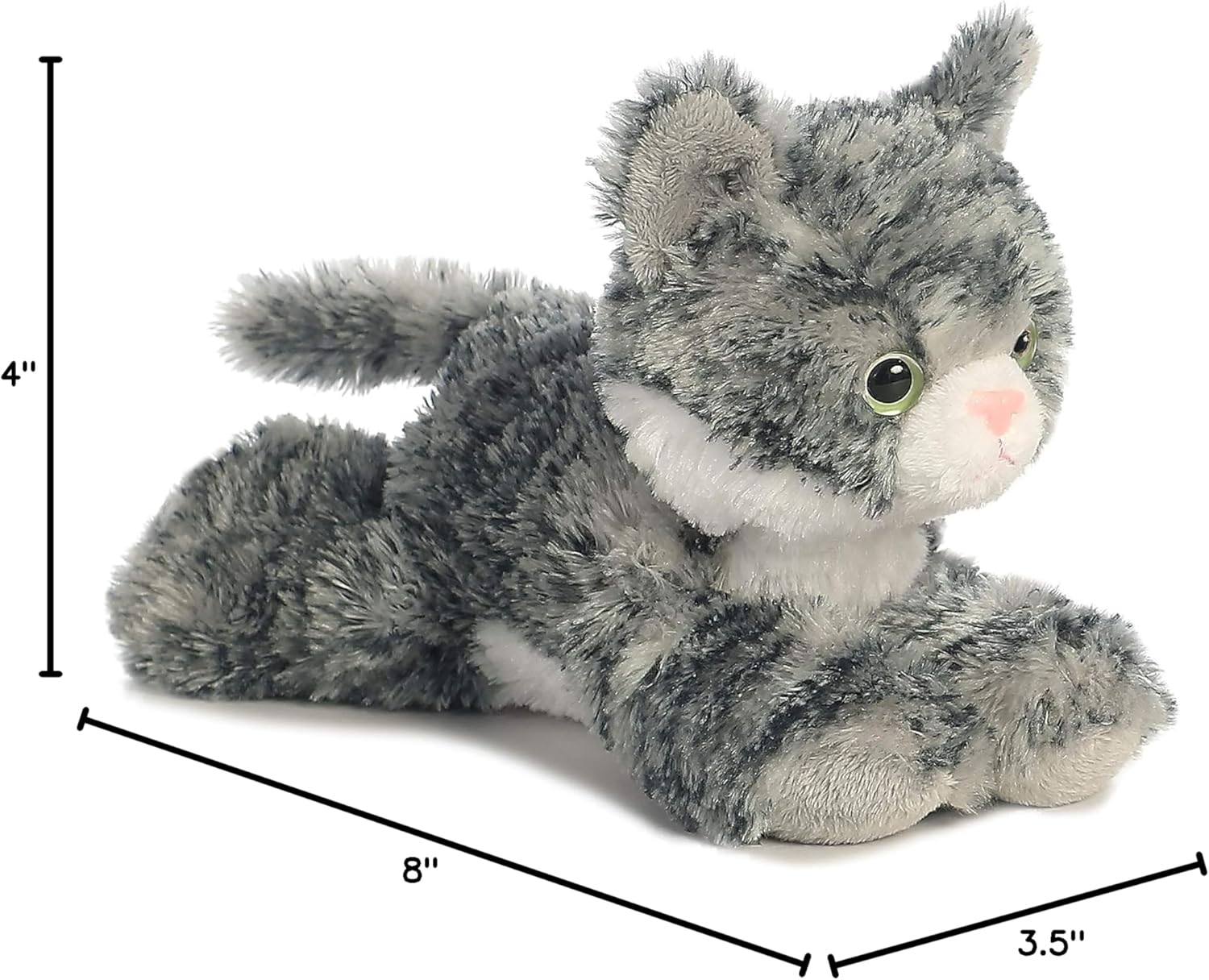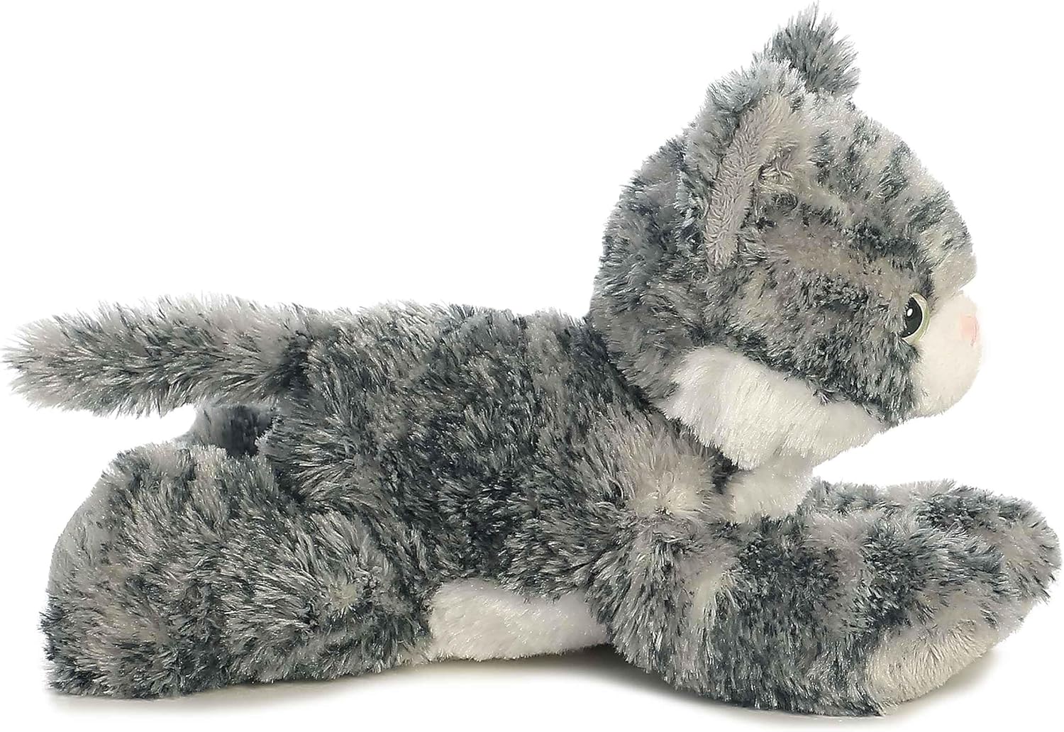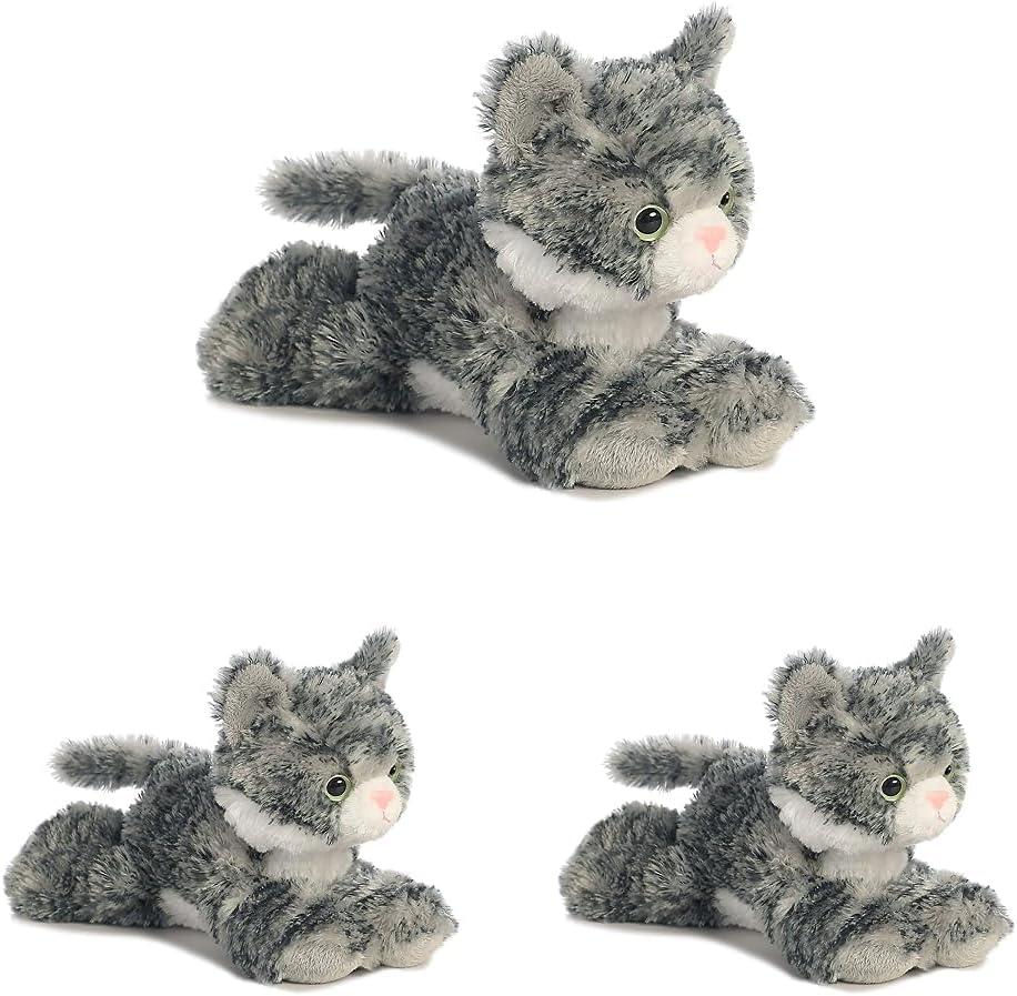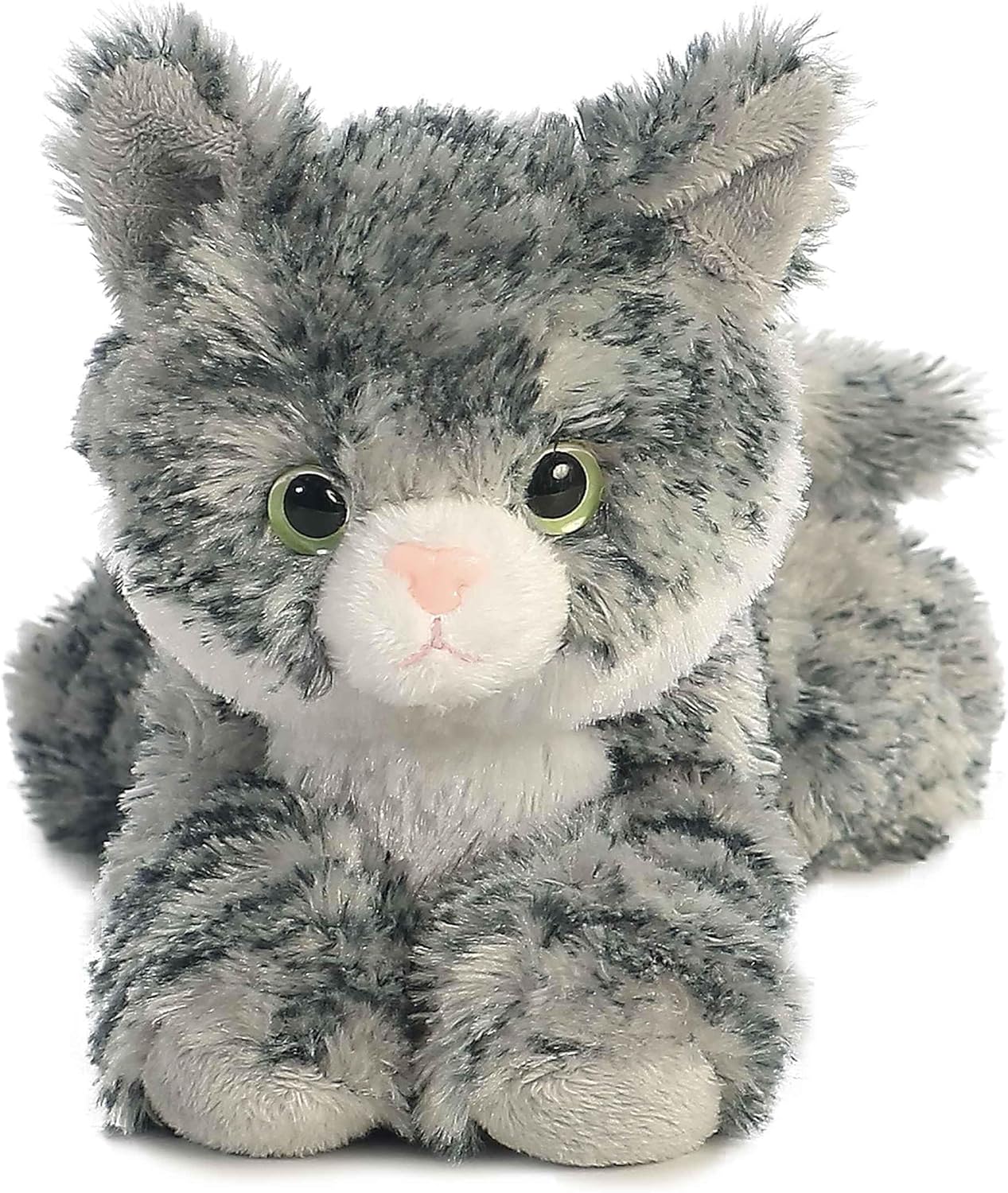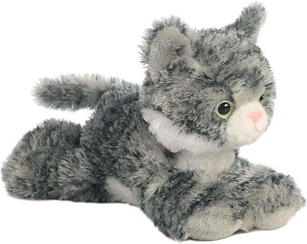 Lily from the Mini Flopsie collection by Aurora is a delightful plush that captures the playful and affectionate nature of a tabby kitten. With her soft, gray-striped fur, bright green eyes, and adorable pink nose, Lily is designed with exquisite detail to bring joy to cat lovers of all ages. This charming plushie is perfect for cuddling and makes a wonderful companion for both children and collectors. Aurora's commitment to quality ensures that Lily is not just a toy but a cherished friend that adds warmth and comfort to any plush collection. Established in 1981, Aurora World is a renowned global leader in plush toys and high-quality gift products. They offer a wide range of branded and licensed products for both children and adults, distributed through various retailers worldwide. With over 35 years of experience, we have helped spark imaginations through our diverse line of plush toys. In recent years, Aurora World has made a significant move towards eco-friendly practices. Utilizing recycled materials they have made triumph in reducing their environmental impact. Their ultimate goal remains to bring smiles to people around the world while contributing to a greener future.