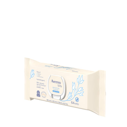 AVEENO Baby Sensitive All Over Wipes, Paraben- & Fragrance-Free, 64 ea (Pack of 2)