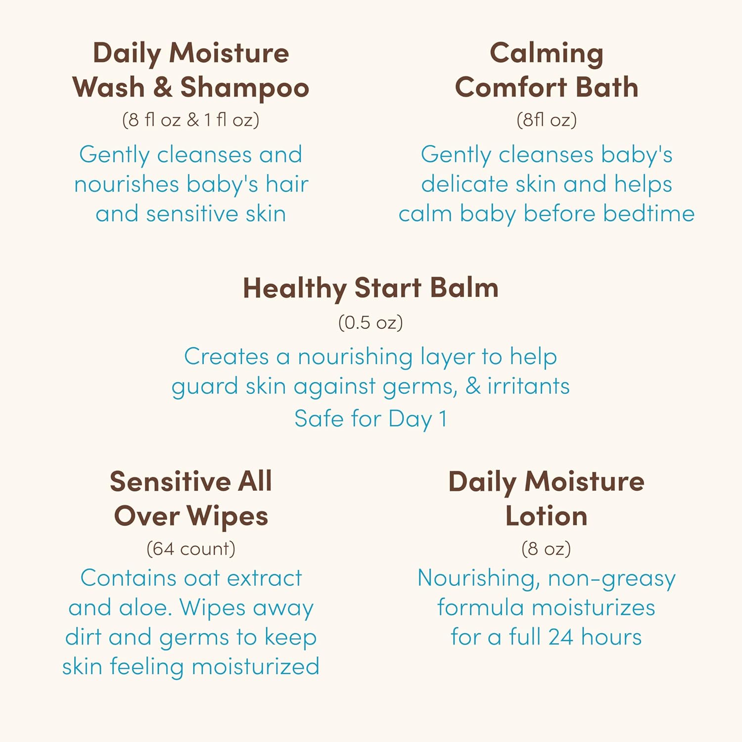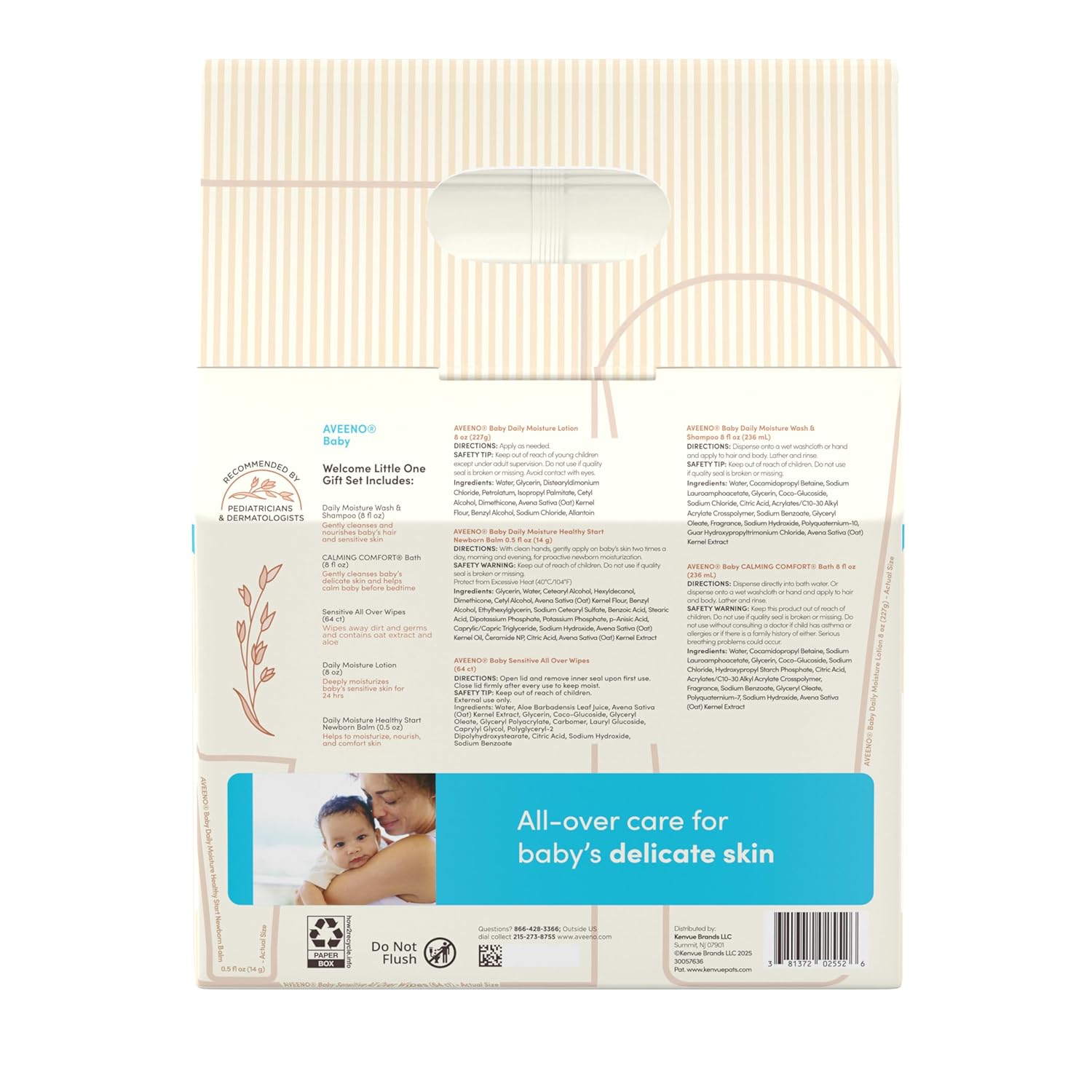 Aveeno Baby Welcome Little One Gift Set, Skincare Set with Nourishing Body Wash & Shampoo, Calming Bath Wash, All Over Wipes, Daily Moisturizing Lotion, & Balm, 5 Items