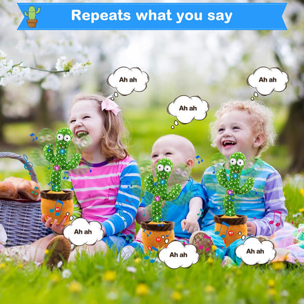 • LEARNING TO TALK - The repeating feature encourages kids to talk more to this lovely dancing Singing cactus. During the talk and repeat process, kids learn to pronounce, to express their ideas and emotions. Mimicking Recording Cactus Toy is an ideal toy especially for kids with autism or speech delays.