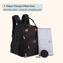 BabbleRoo Extra Large Diaper Bag Backpack, Expandable Baby Bag with Up to 50% More Capacity - Travel Essentials Baby Bag Tote with Changing Pad, Stroller Straps & Pacifier Case - Unisex, Black