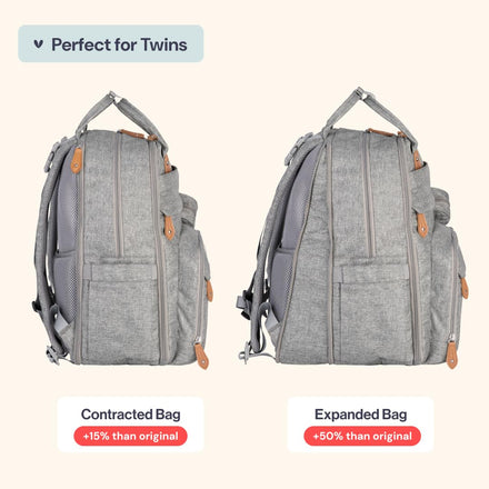 • Perfect Twin Baby Shower Gifts! Your Baby Registry Search ends here! Extra Large Diaper Bag Backpack expands from 30 to 40 liter capacity, 50% more storage than our Original Diaper Backpack! Includes pacifier holder and an easy wipe-clean foldable changing mat (size: 23''x14.5"), stroller straps - everything on-the-go parents need!