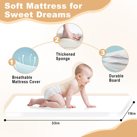 • UNIQUE DESIGN: The upgraded baby bassinet comes with cute hanging toys that can arouse the baby's curiosity. In addition, a soft and comfortable mattress ensures comfort. The bedside bassinet also includes a large storage basket, allowing you to keep baby essentials within reach